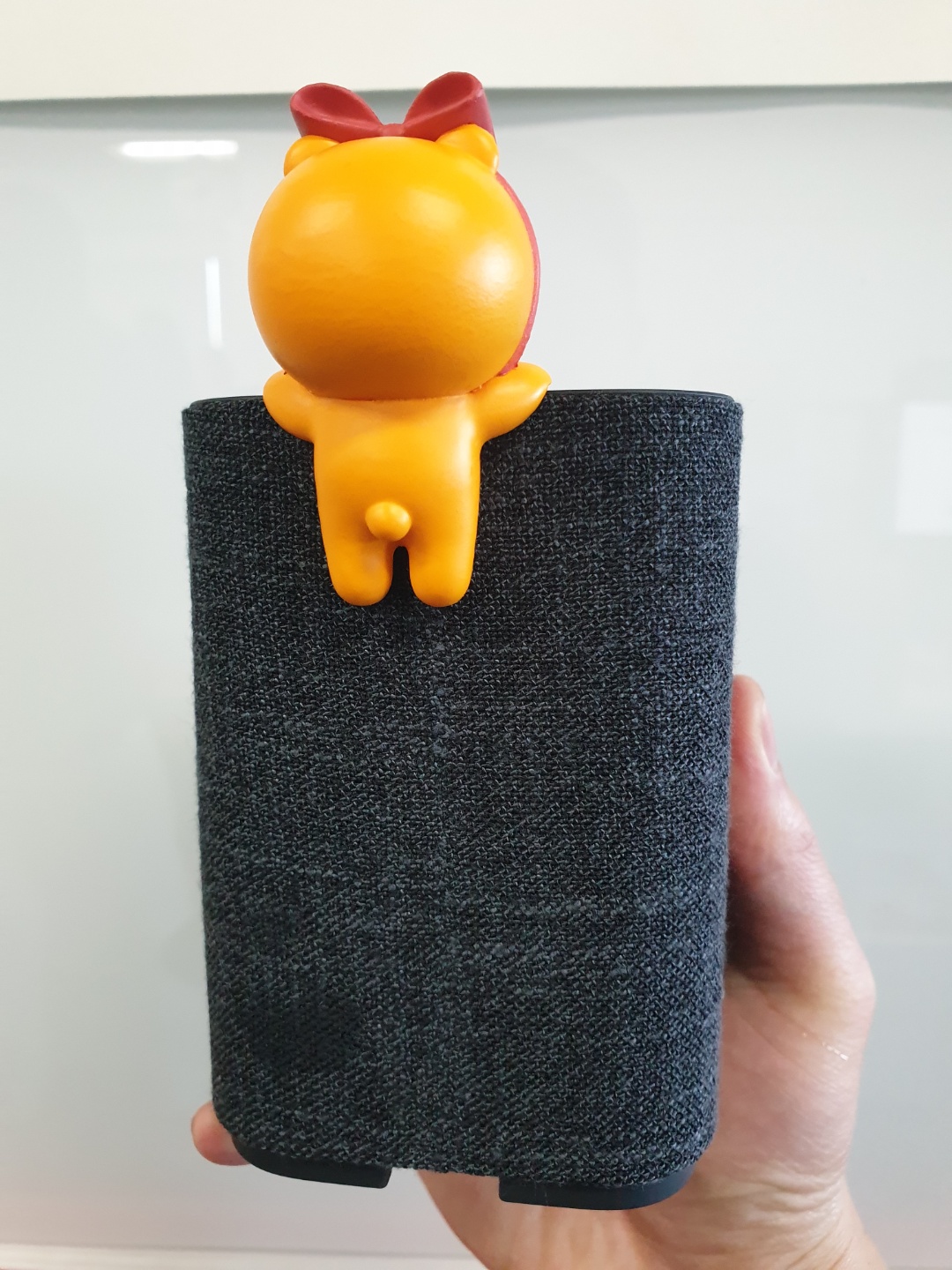 스피커에 매달려 있는 듯한 모습이 참으로 귀엽습니다.