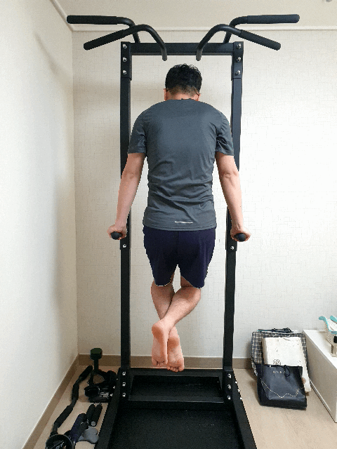 딥스바에 걸었을 때보다 철봉 운동 시, 힘이 더 들어갔어요!