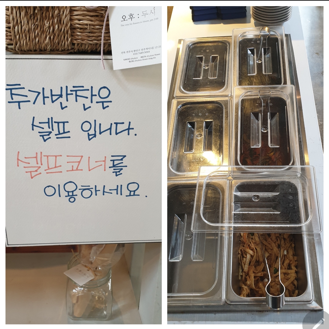 식당 중심부에 있는 반찬 셀프 코너에서 마음껏 맛있는 반찬을 가져다 먹을 수 있는 점이 좋았어요!