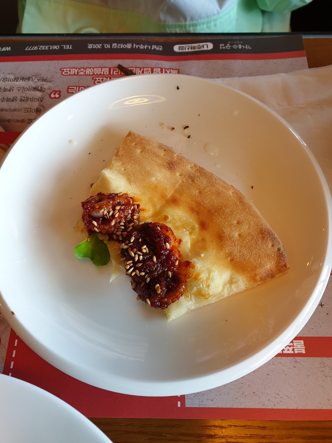불 주꾸미는 비빔밥으로만 즐겨도 되지만, 이렇게 고르곤졸라 피자에 올려 먹어도 맛있어요!