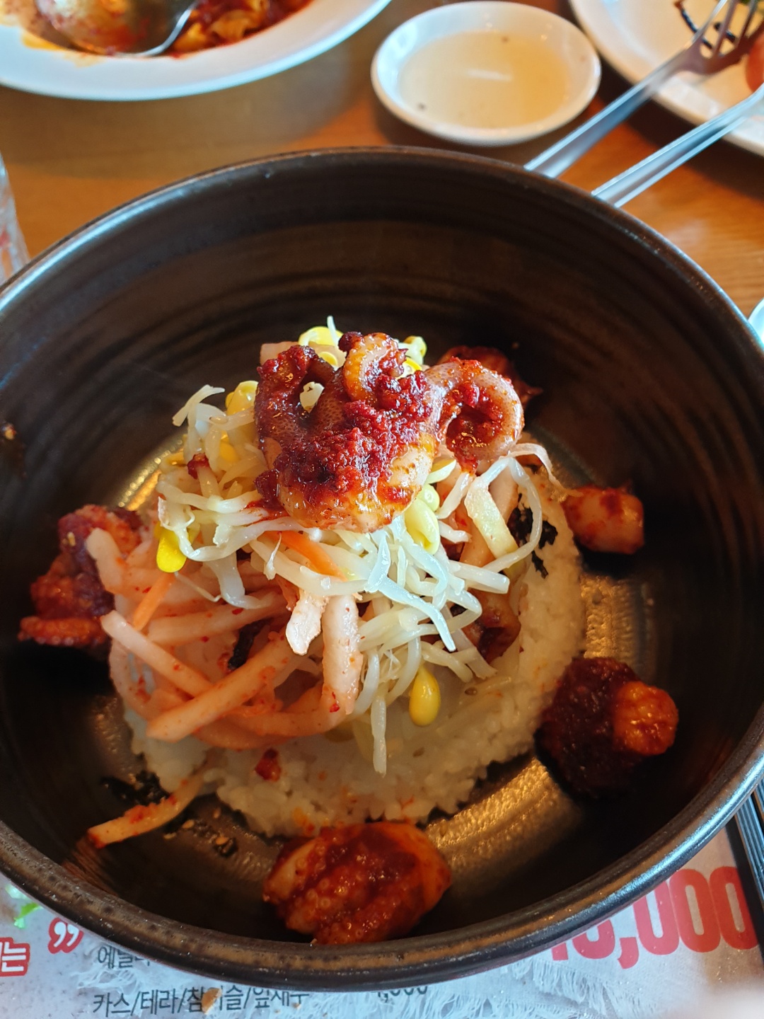 콩나물을 넣어 비벼주면 맛있는 쭈꾸미 비빔밥이 완성됩니다!