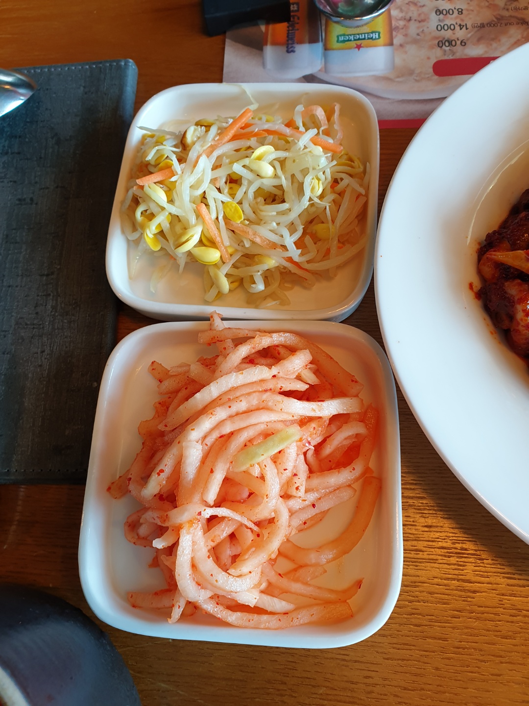 반찬은 비빔밥용으로 간단히 즐길 수 있는 콩나물과 무생채가 나왔어요!