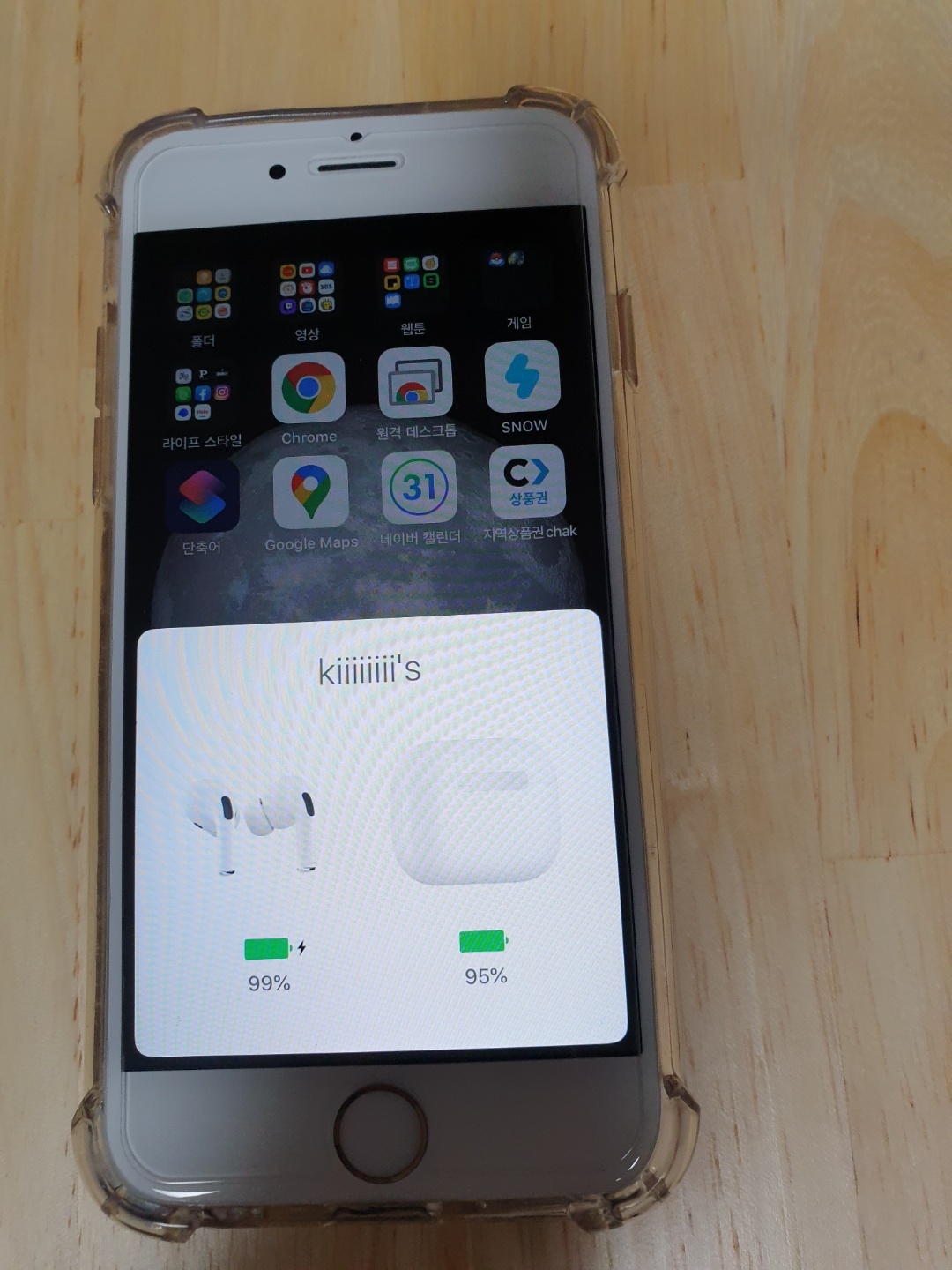 에어팟 프로의 장점 중 하나는 에어팟 및 충전케이스의 배터리 상태를 확인할 수 있다는 점이에요.