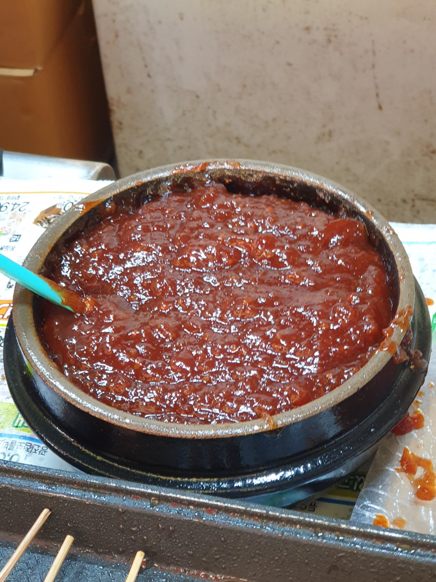 사장장님 만의 비법이 담긴 염통꼬치 소스통입니다. ㅎㅎ
