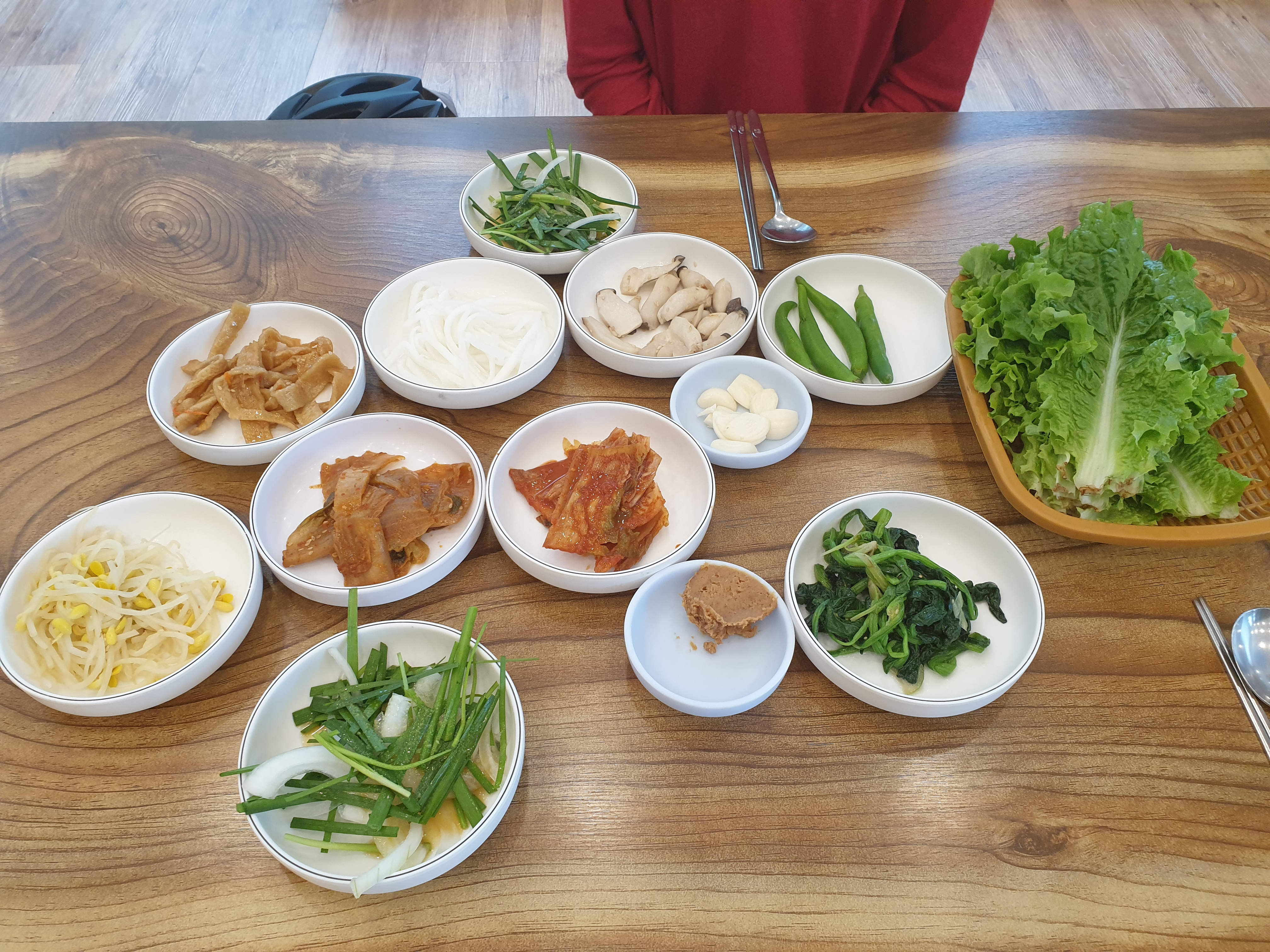 메뉴를 주문하니 신선하고도 맛있는 여러 종류의 반찬들이 함께 나옵니다.