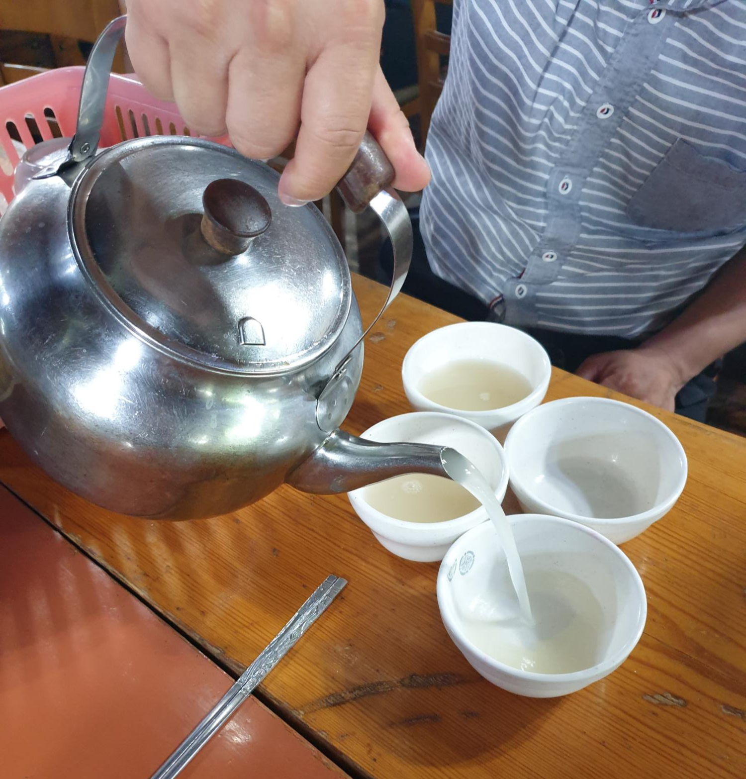 식당 안에서 자리를 잡으면 이렇게 주전자에 담긴 뼈국물 육수를 마음껏 즐길 수 있습니다.
