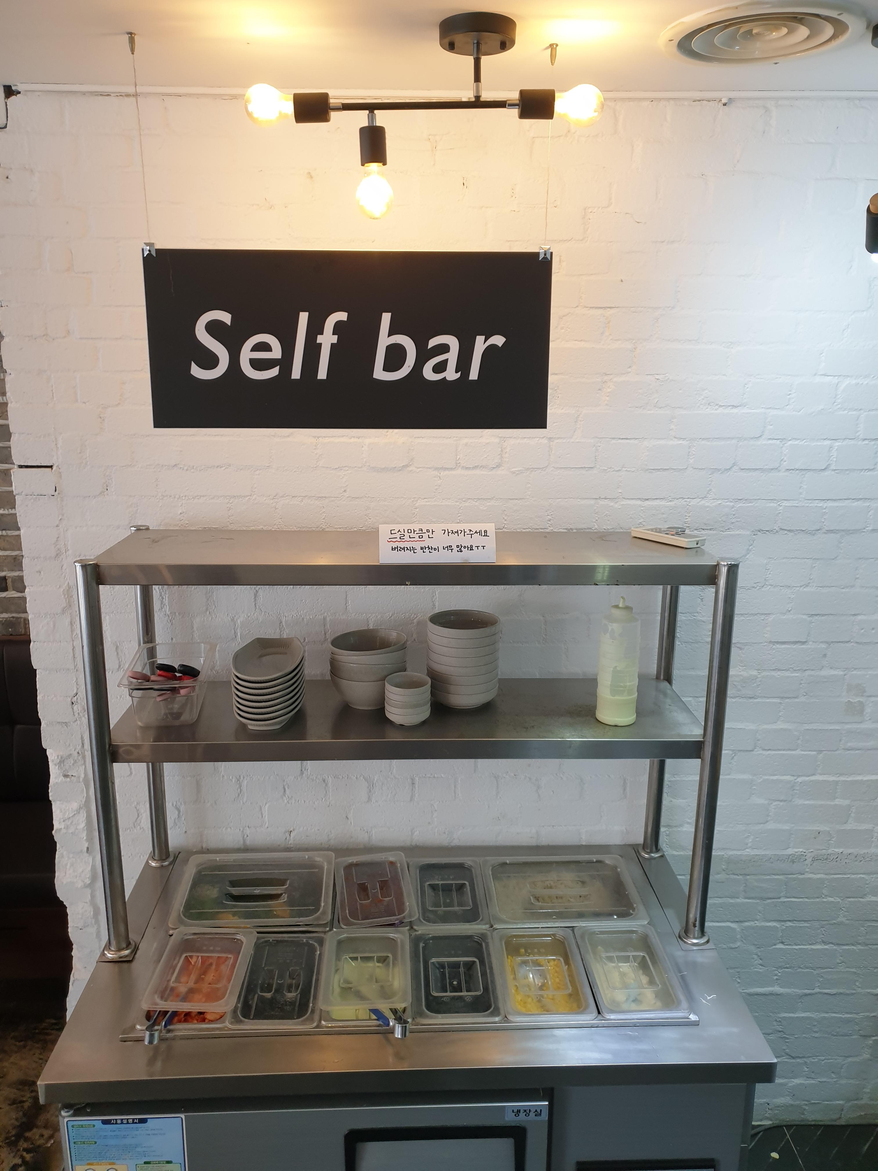 만약 반찬이 부족하다면 반찬 self bar를 이용하셔서 추가로 가져다먹을 수 있어요.