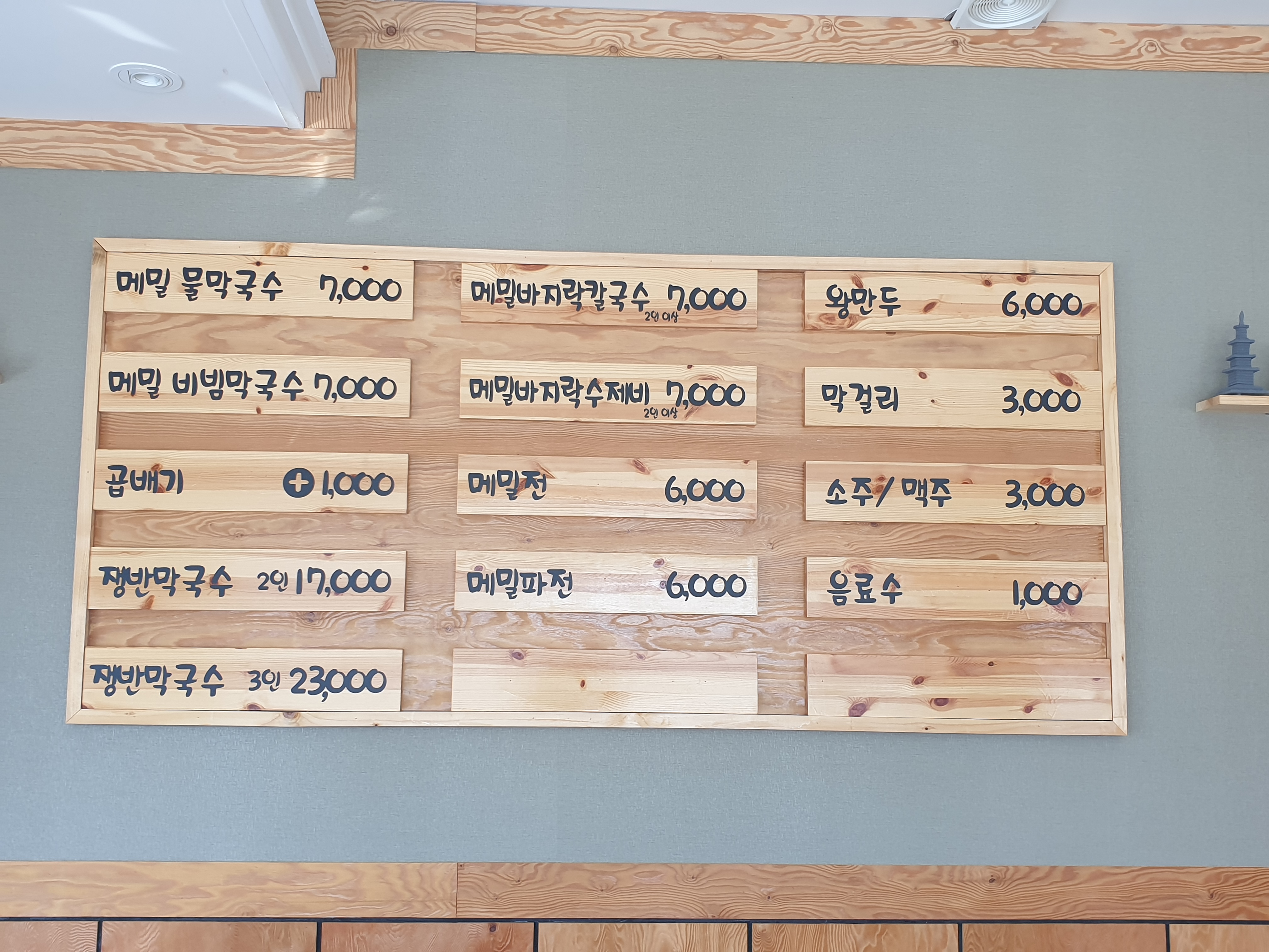 저희는 메밀 물막국수(7,000원), 메밀 비빔막국수(7,000원), 왕만두(6,000원) 세 가지 메뉴를 주문했어요!