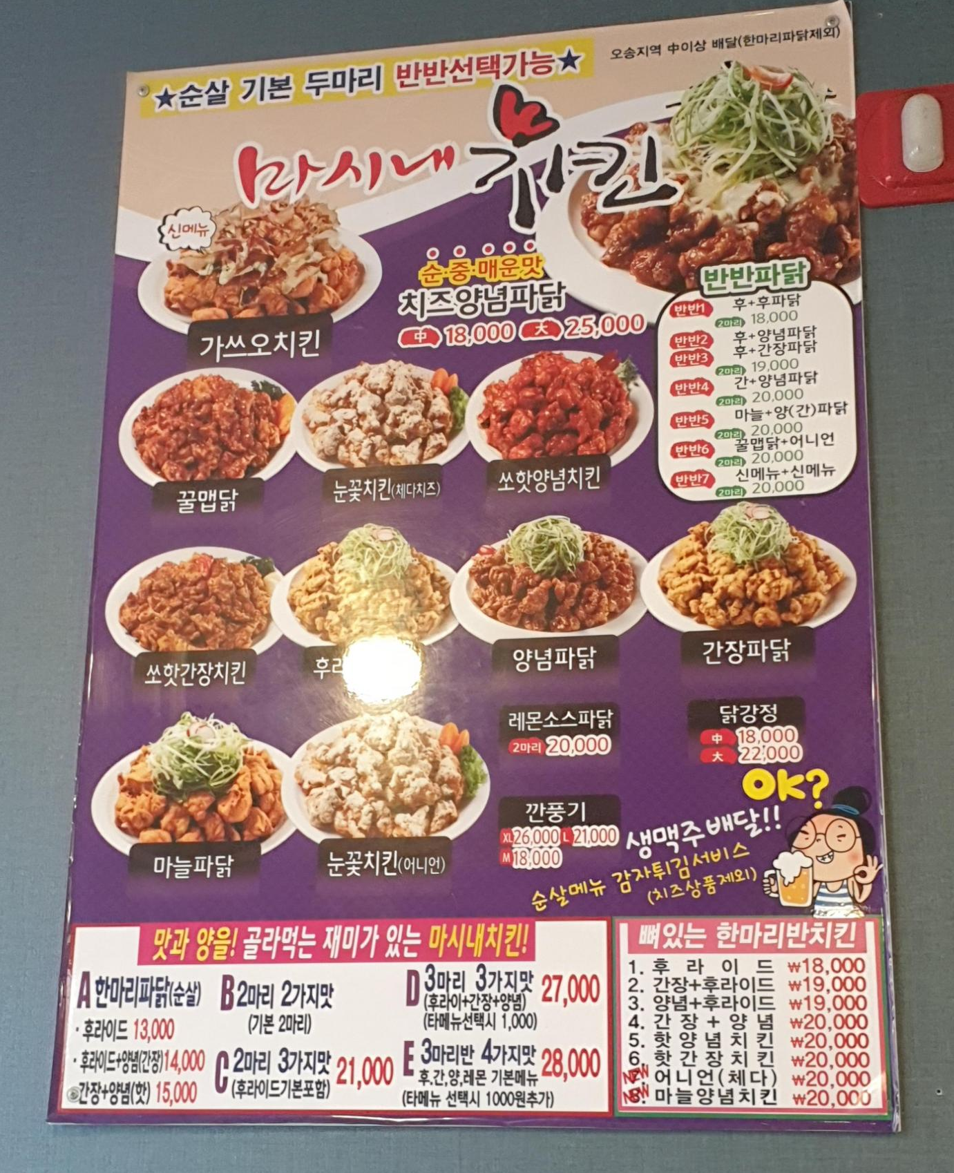 탕수육 맛집으로 알고 왔는데, 이렇게 다양한 치킨 종류, 골뱅이 무침, 오뎅탕, 먹태, 감자 모둠튀김, 모둠튀김 등 메뉴가 굉장히 다양했어요! ㅎㅎ