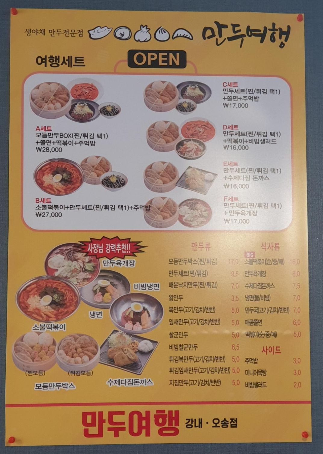 이 외에도 수제 탕수육 전문점답게 다양한 종류의 탕수육이 판매되고 있었어요!