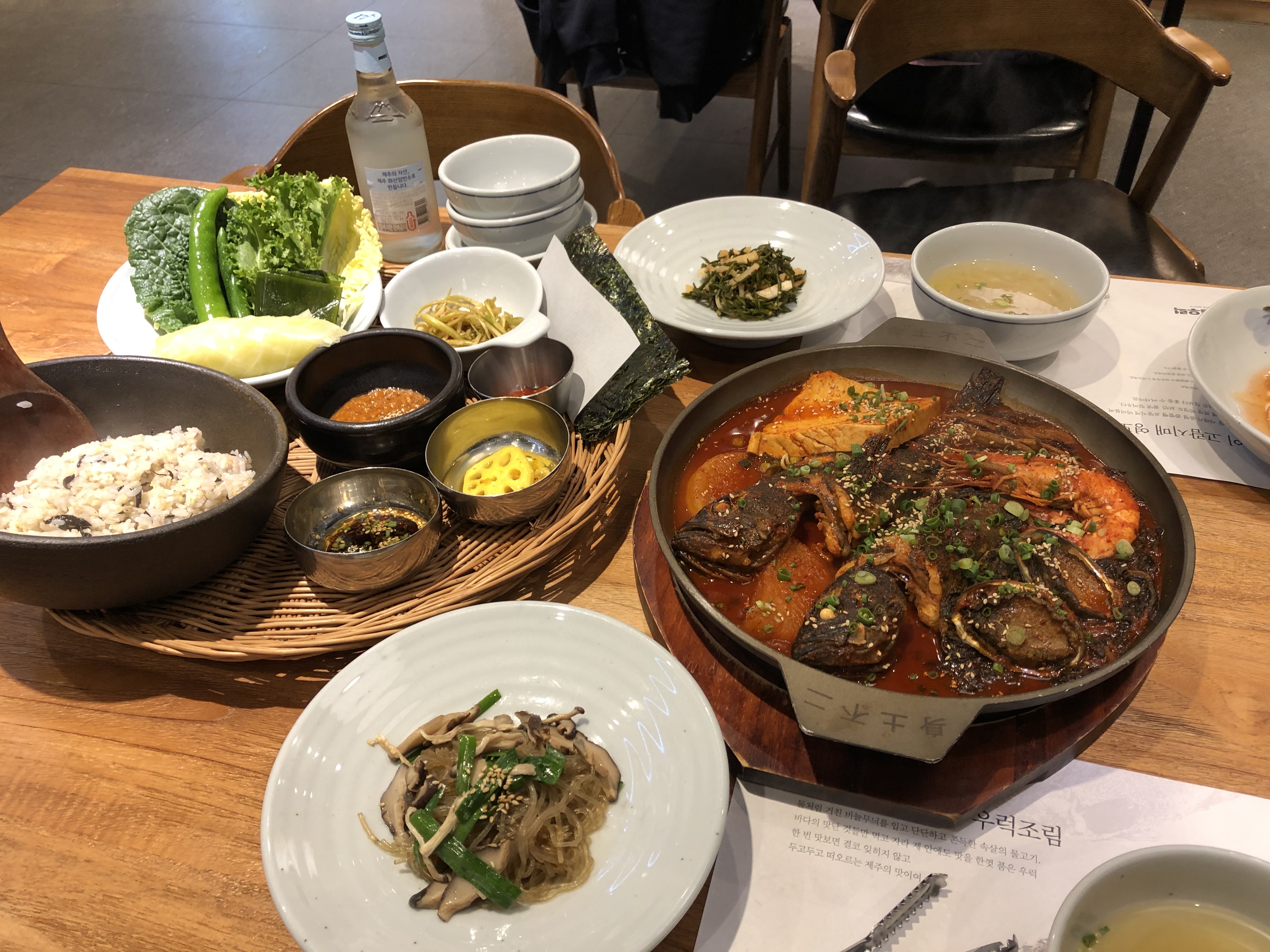 주문한 음식은 해녀들이 먹는 낭푼 밥과 우럭조림 이었어요!