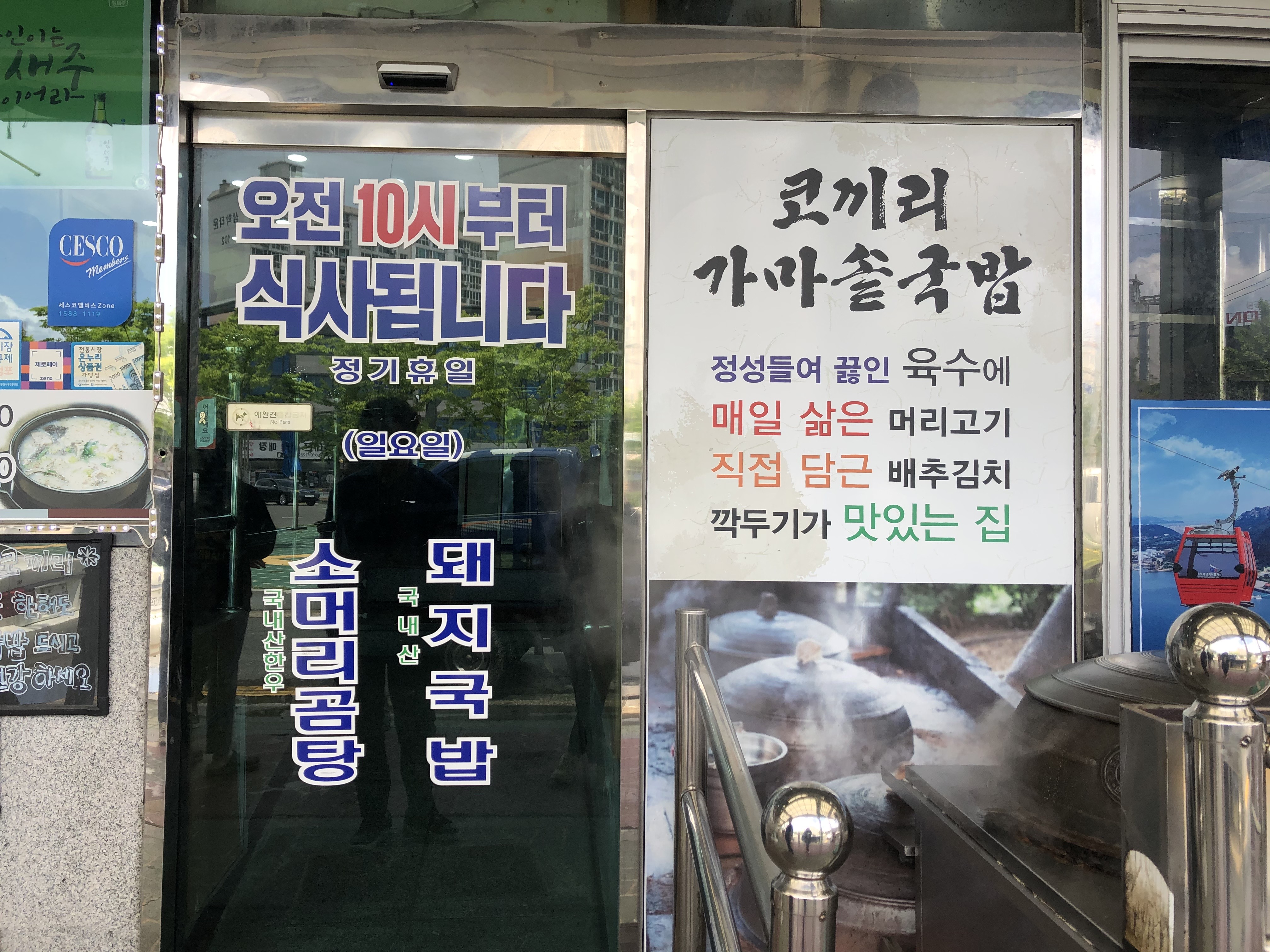 식당 외관에는 정성 들여 끓인 육수에, 매일 삶은 머리고기, 직접 담근 배추김치, 깍두기가 맛있는 집이라고 홍보가 되어 있었는데요.