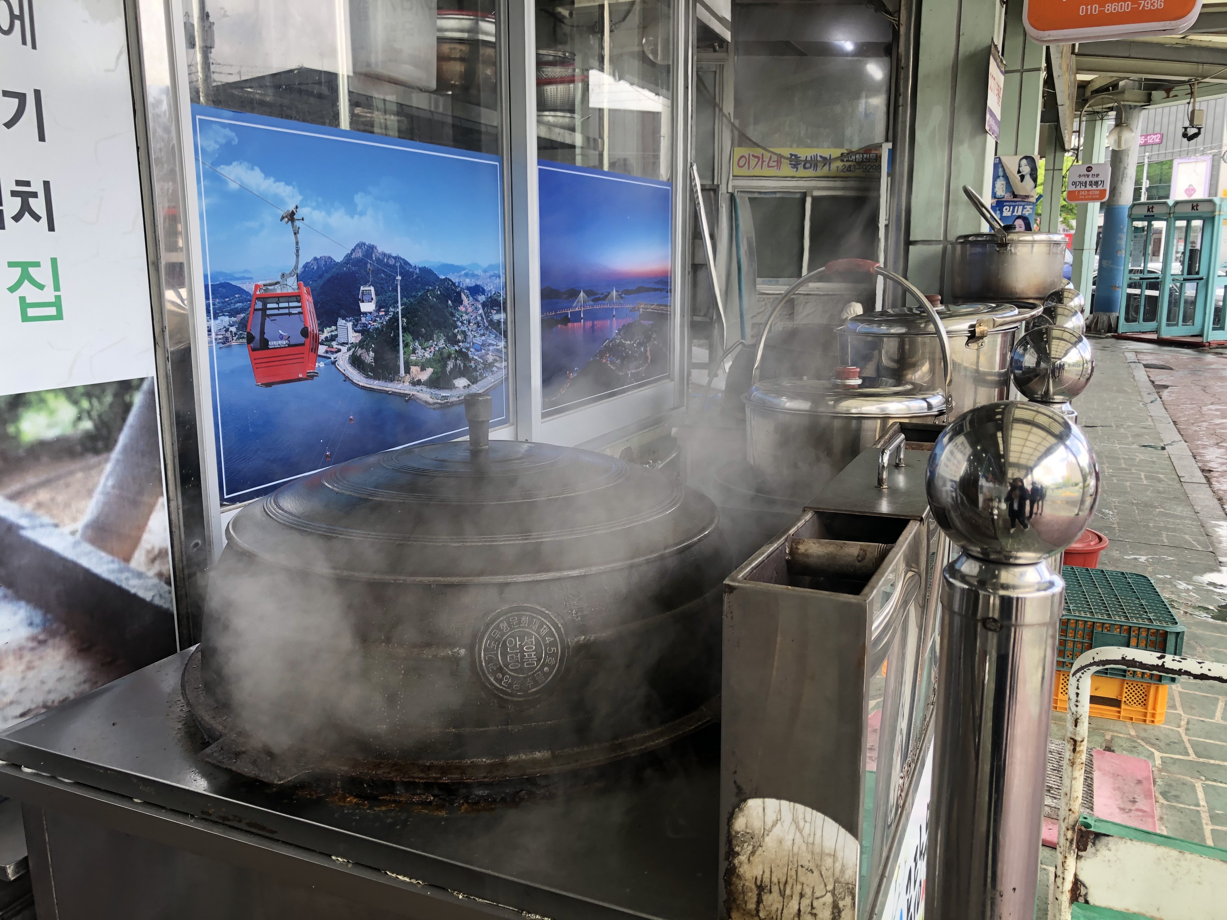 내부로 들어가기 이전, 밖에서 펄펄 끓고 있는 가마솥이 보였어요.