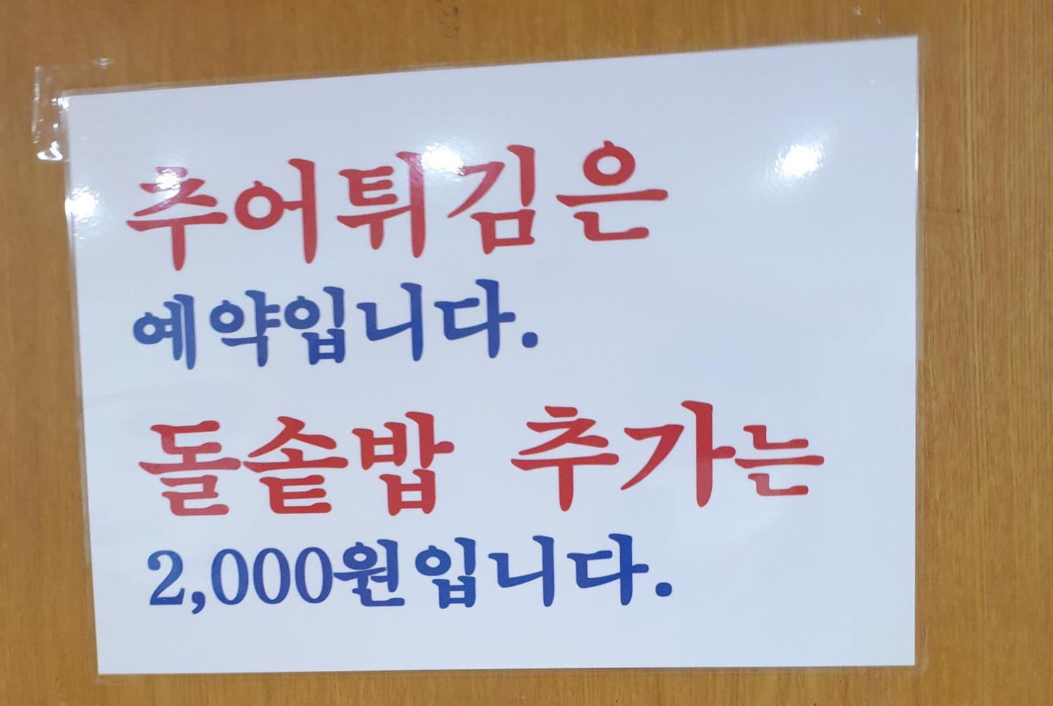 또한, 추어튀김 메뉴는 예약제로 주문을 받는다는 점이 특이했습니다.