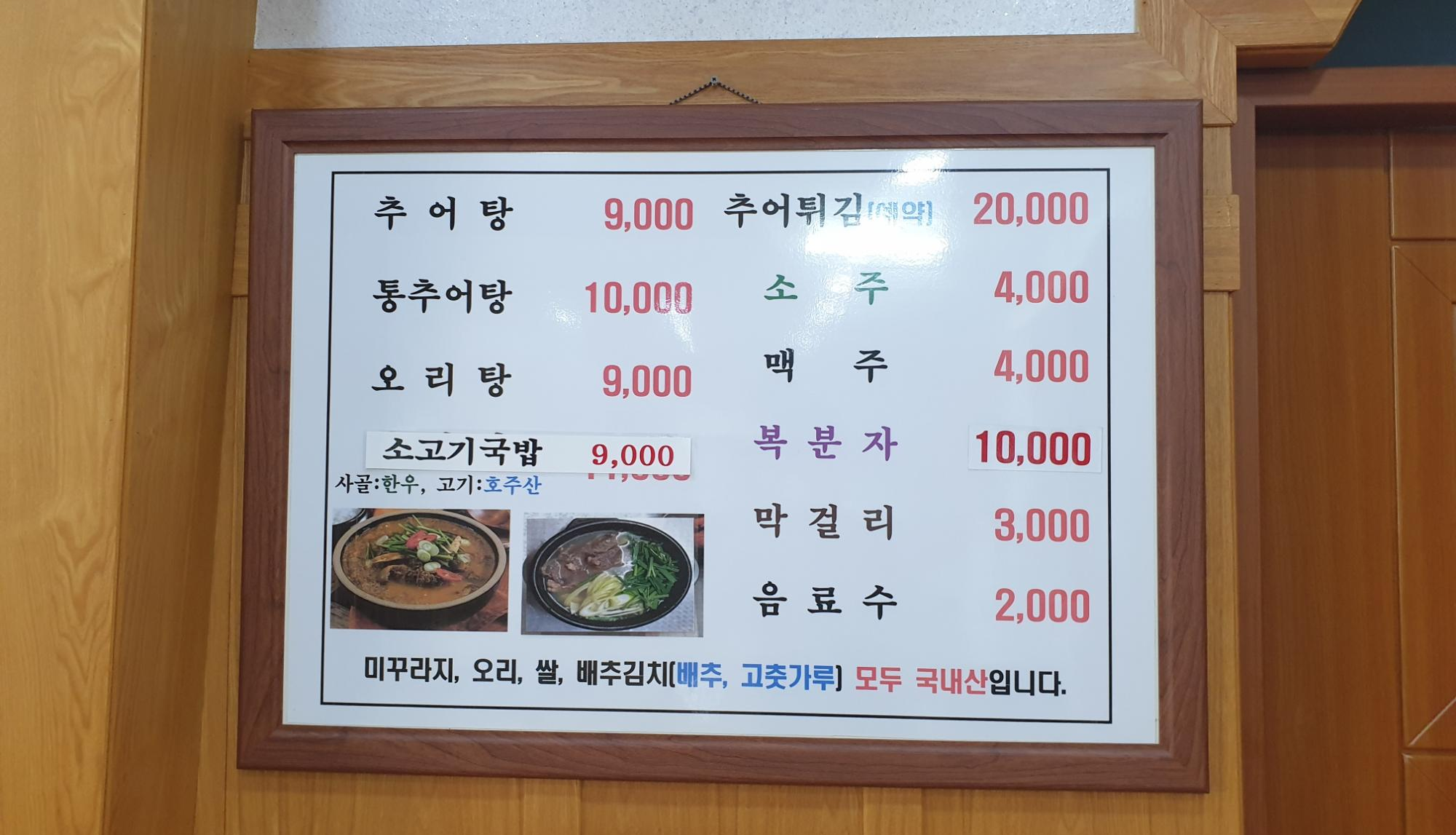 저희는 기본 메뉴인 추어탕 2개를 주문했는데요. (추어탕 1그릇당 가격 : 9,000원)