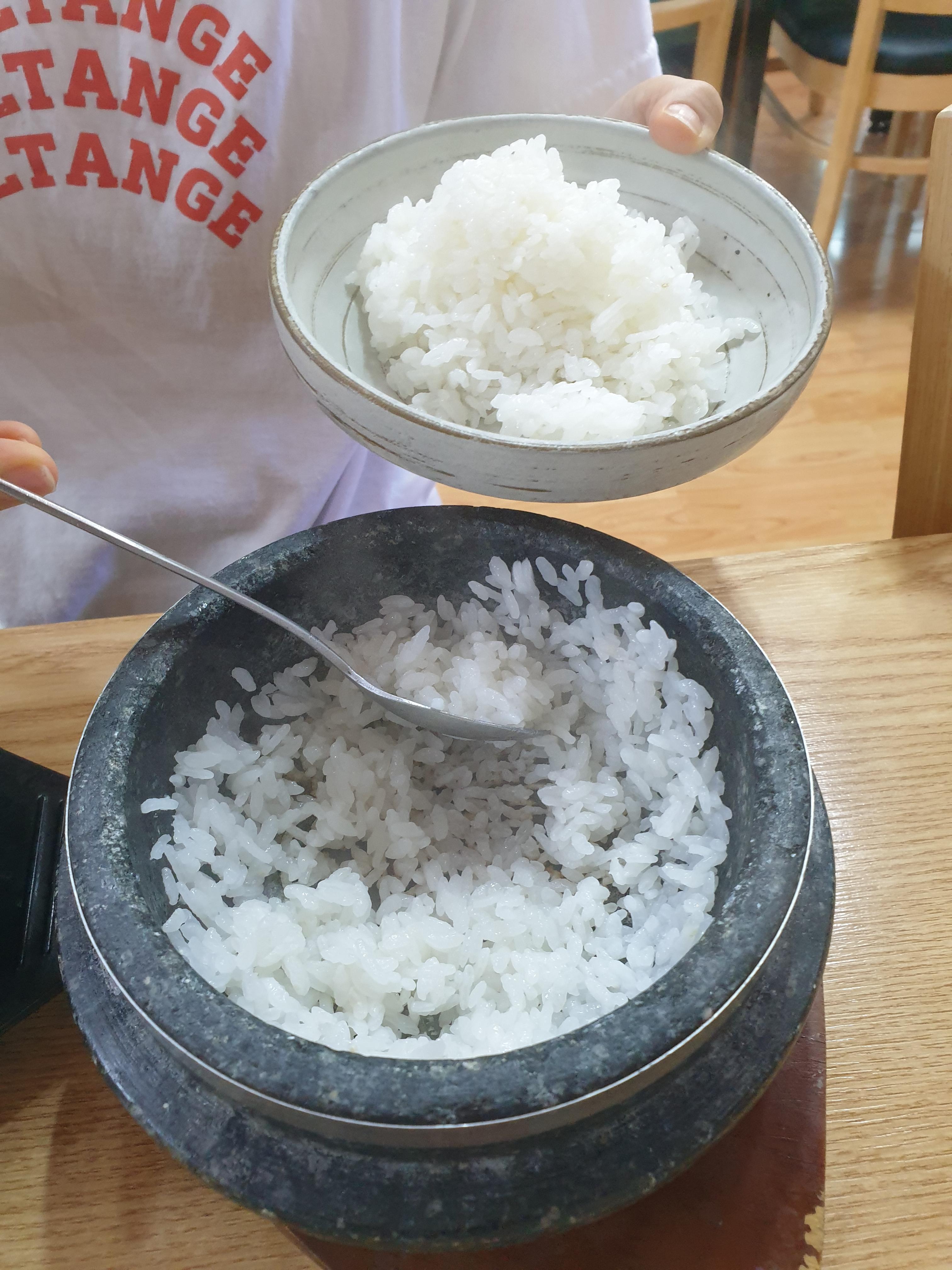 앞서 설명드린 것처럼 추어탕 메뉴를 주문하면 이렇게 돌솥밥이 함께 나옵니다.