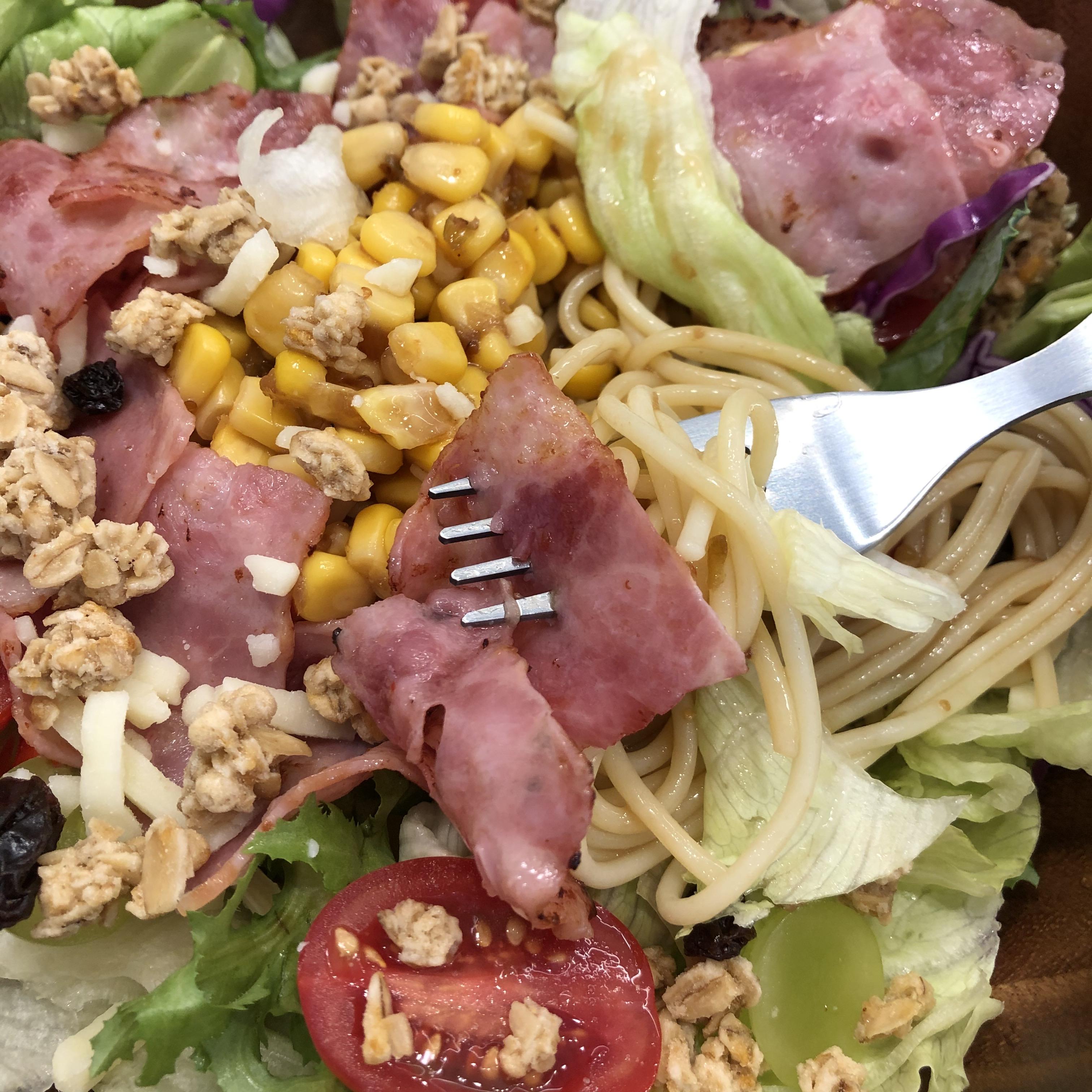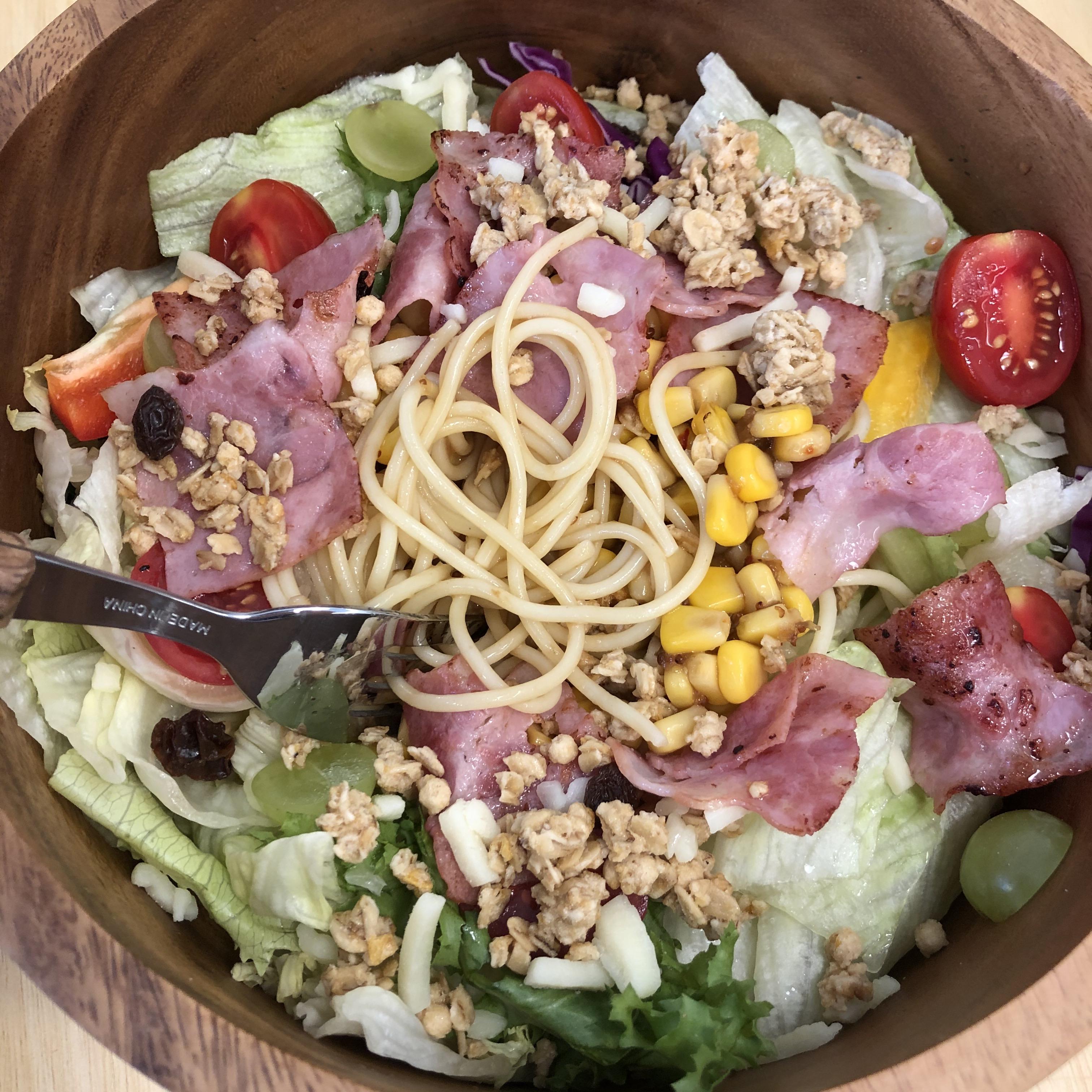 메뉴 안에 있는 파스타는 냉파스타로 소스와 샐러드, 베이컨과 환상 조합이었어요.
