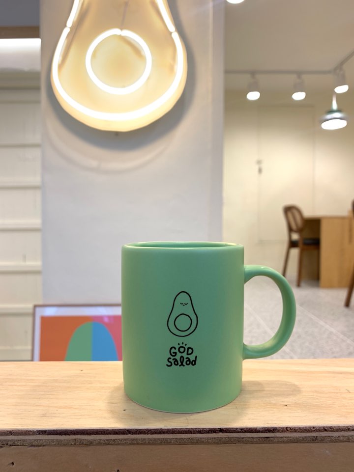 그리고 갓샐러드 양림점에서는 홀 방문 메뉴 주문 시, 아보카도 캐릭터 '동동이'가 그려진 귀여운 머그컵 무료 증정 이벤트를 진행하고 있었어요!