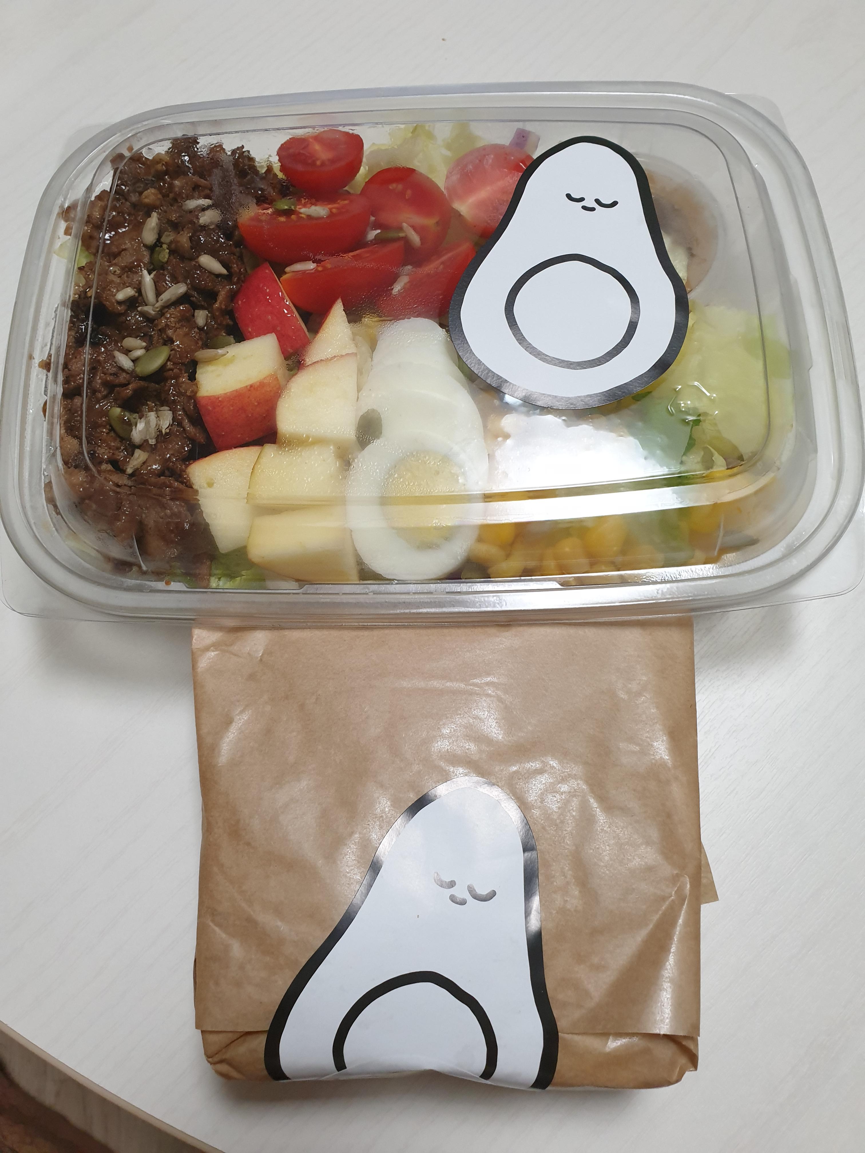 제가 매장에서 포장해온 음식은 불고기 샐러드와 달걀 토스트입니다.