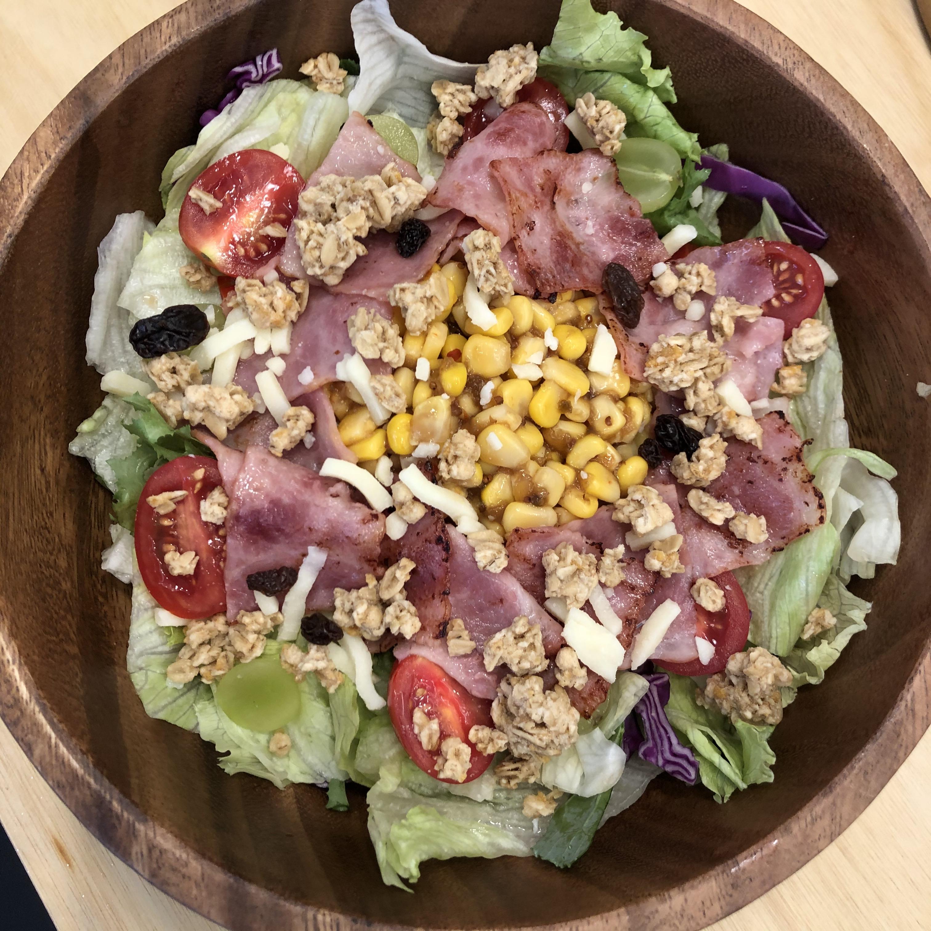 홀에서 이용한 메뉴는 베이컨 샐러드 파스타와 요거트볼, 카야토스트였습니다.