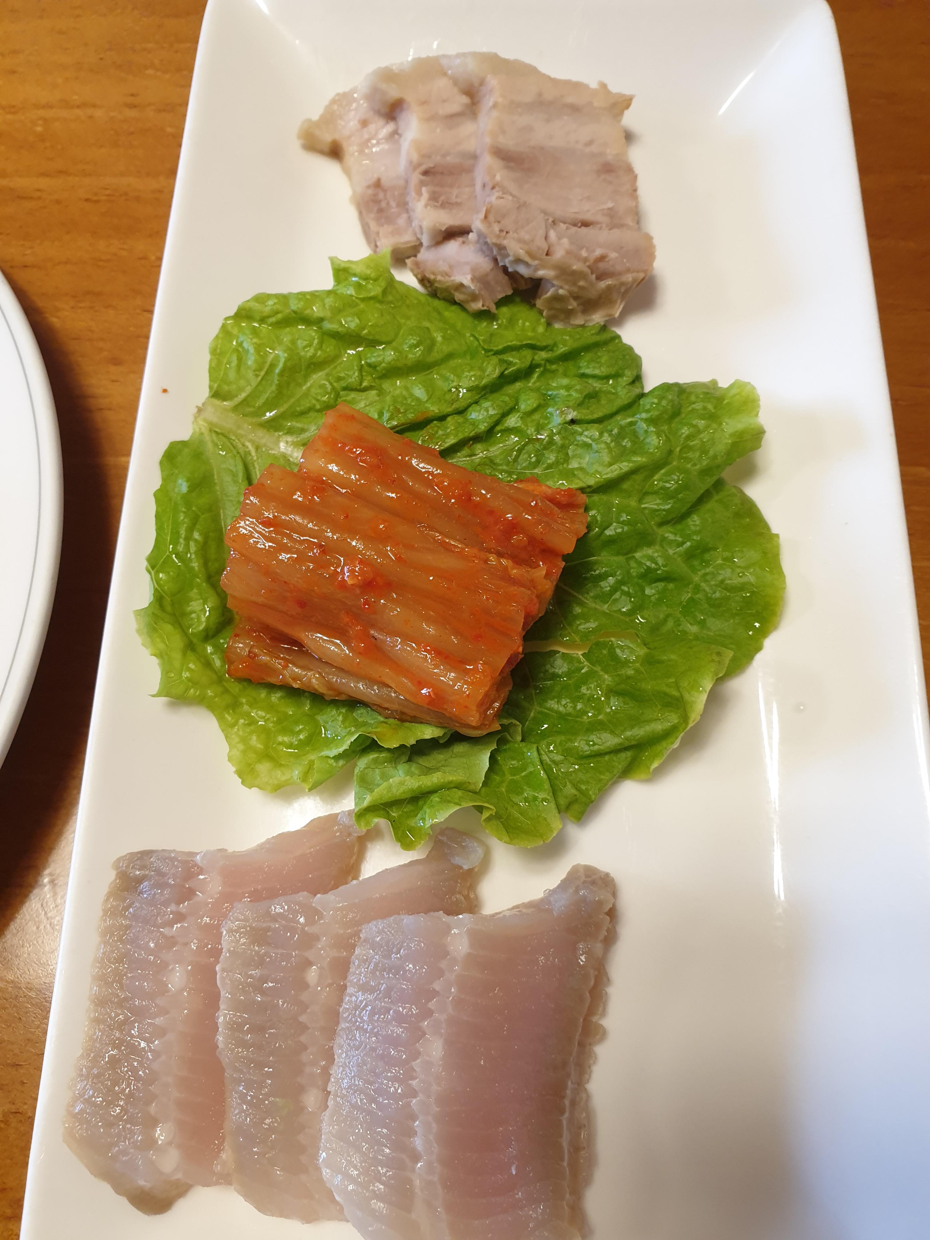 평소에 삭힌 홍어를 잘 먹지 못하지만 삼합으로 즐기니 맛있더군요!