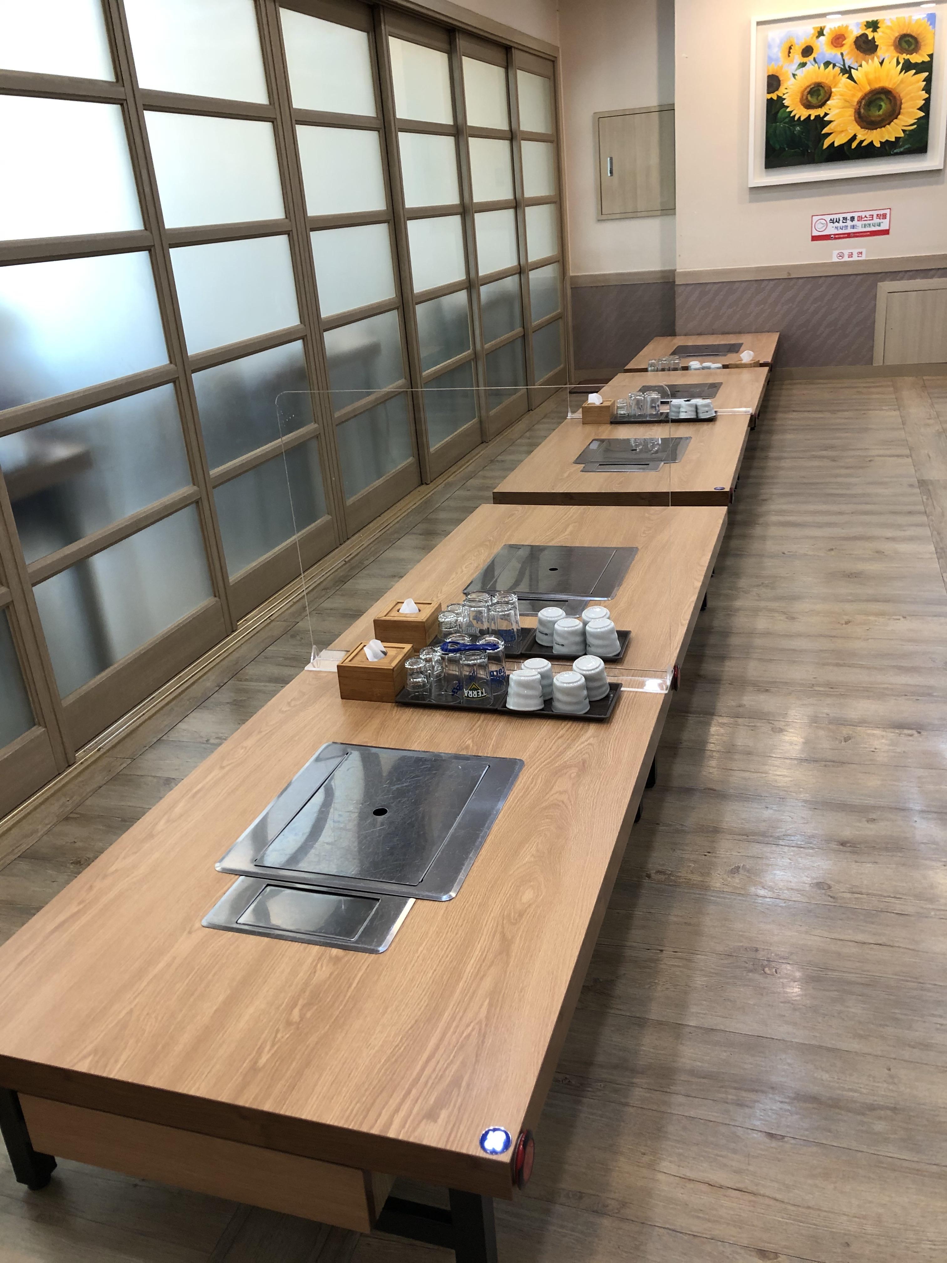 자리 곳곳에 코로나 19 예방을 위한 칸막이들이 설치되어 있었습니다.