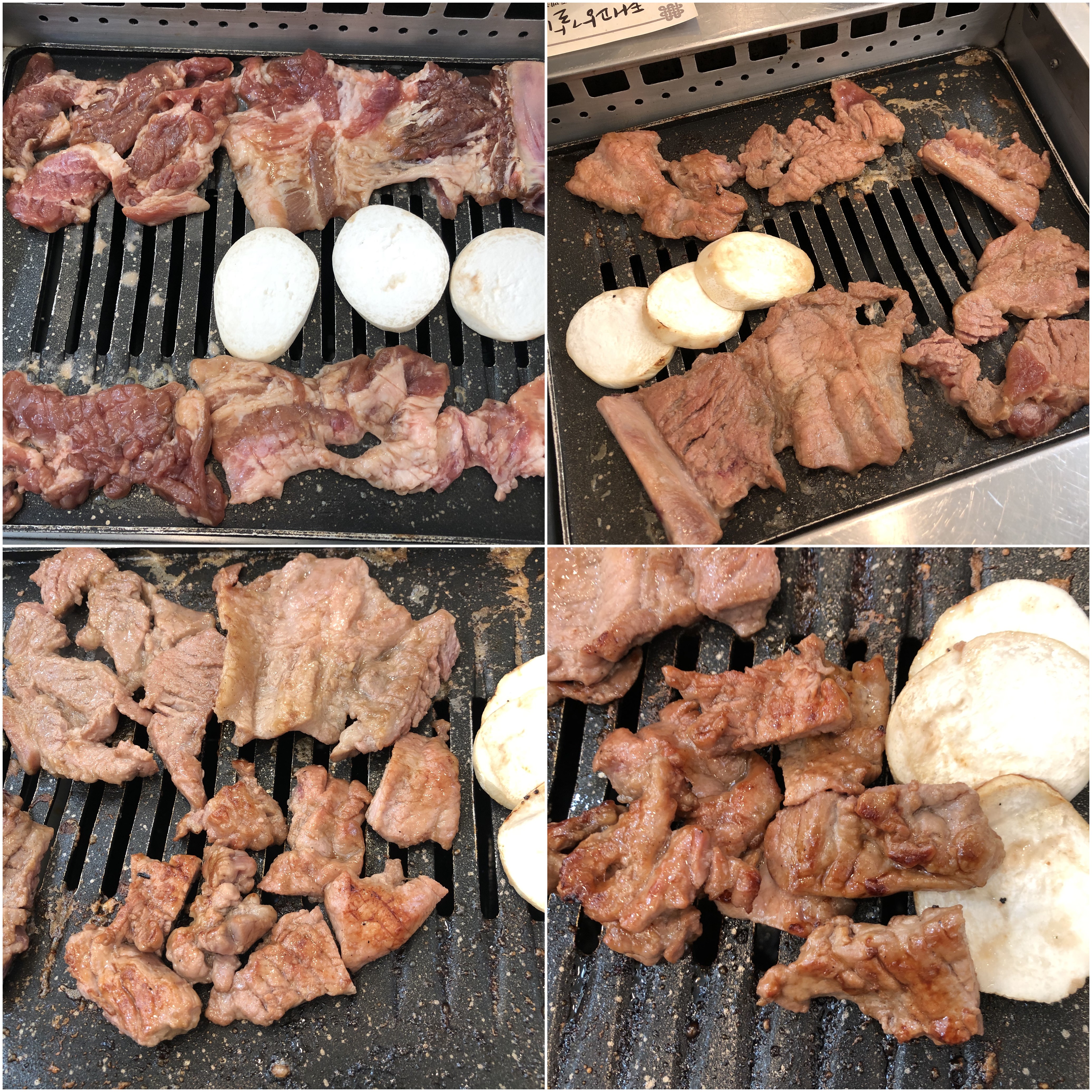 이 사진은 돼지갈비가 맛있게 익어가는 과정입니다.