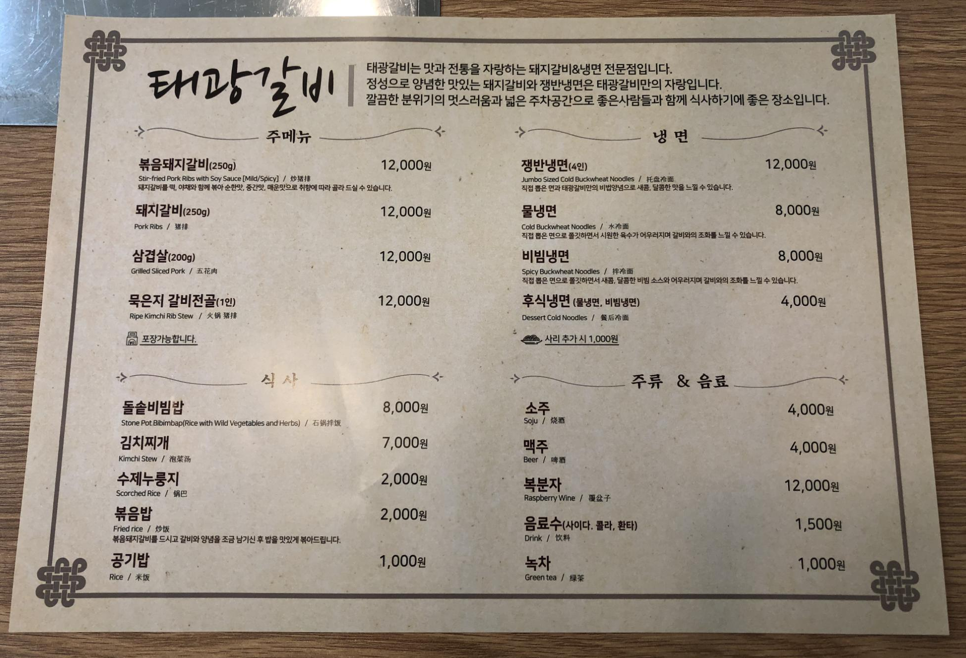 저희는 이날 돼지갈비가 너무 먹고 싶어 이 식당에 방문을 했었던지라 돼지갈비 2인분을 필수로 선택했고 후식 종류로 물냉면과 누룽지를 동시에 주문했습니다.