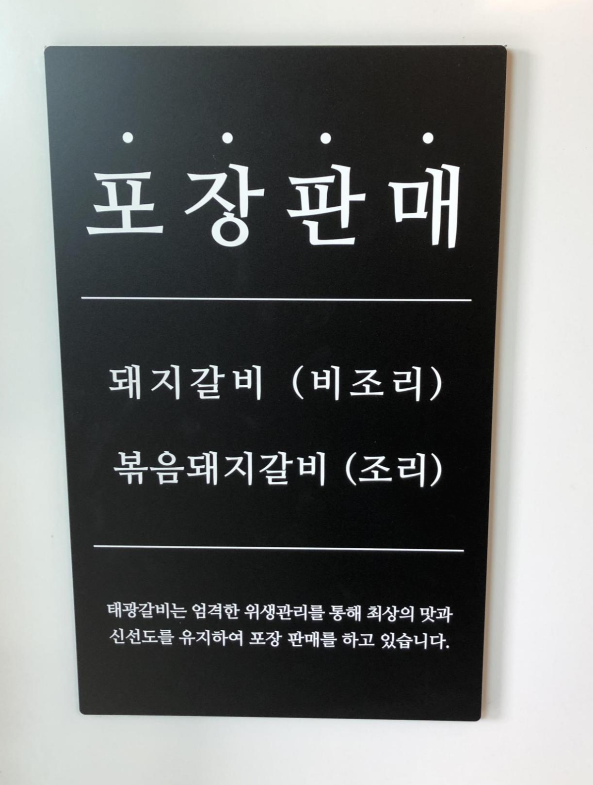 식당 메뉴 중에서는 비 조리된 돼지갈비와 조리된 볶음돼지갈비를 포장 주문할 수 있었어요!