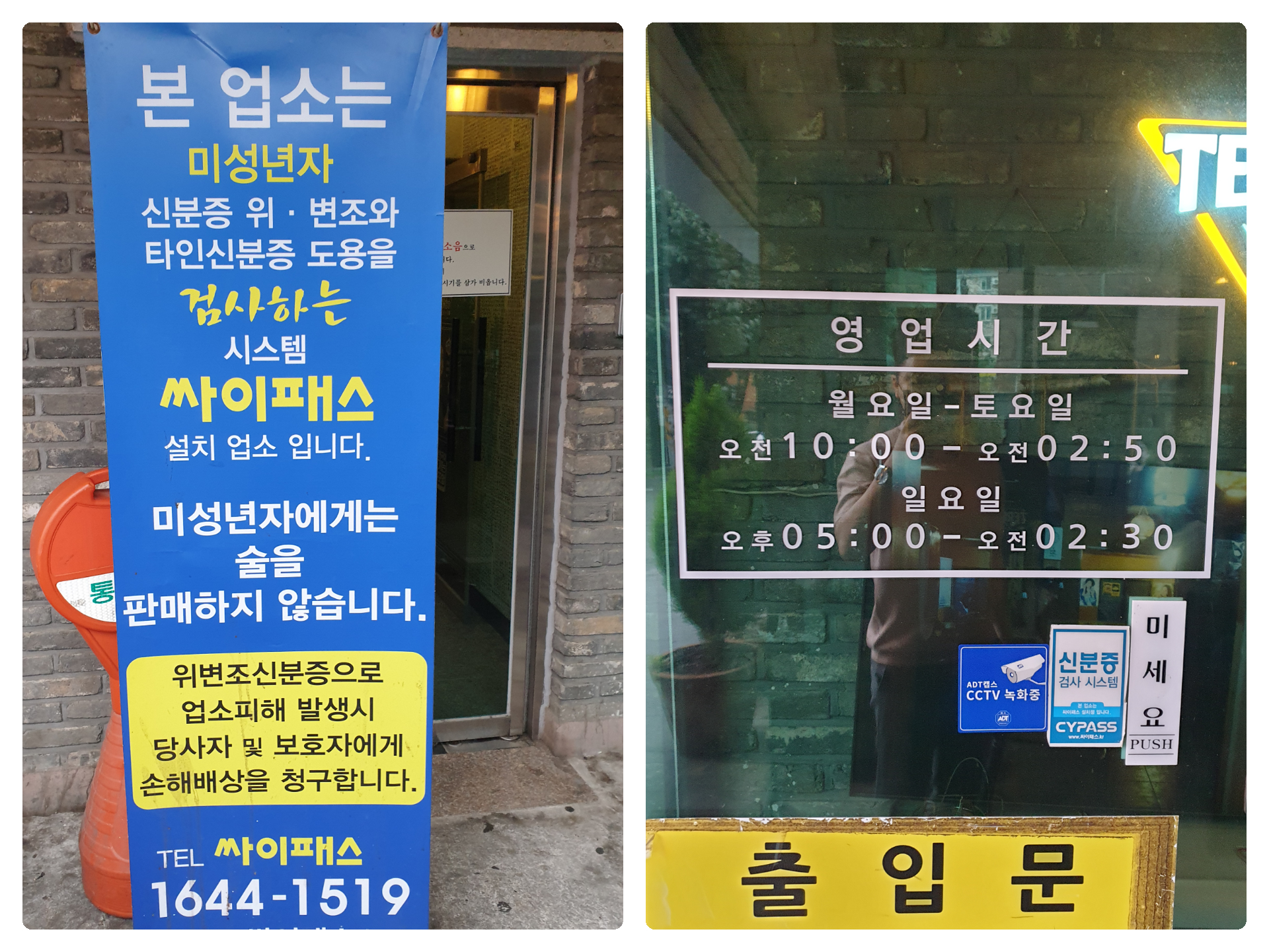 신분증 변조, 타인 신분증 도용을 검사하는 시스템 싸이패스 설치 업소라고 소개하는 배너가 설치되어 있었어요.