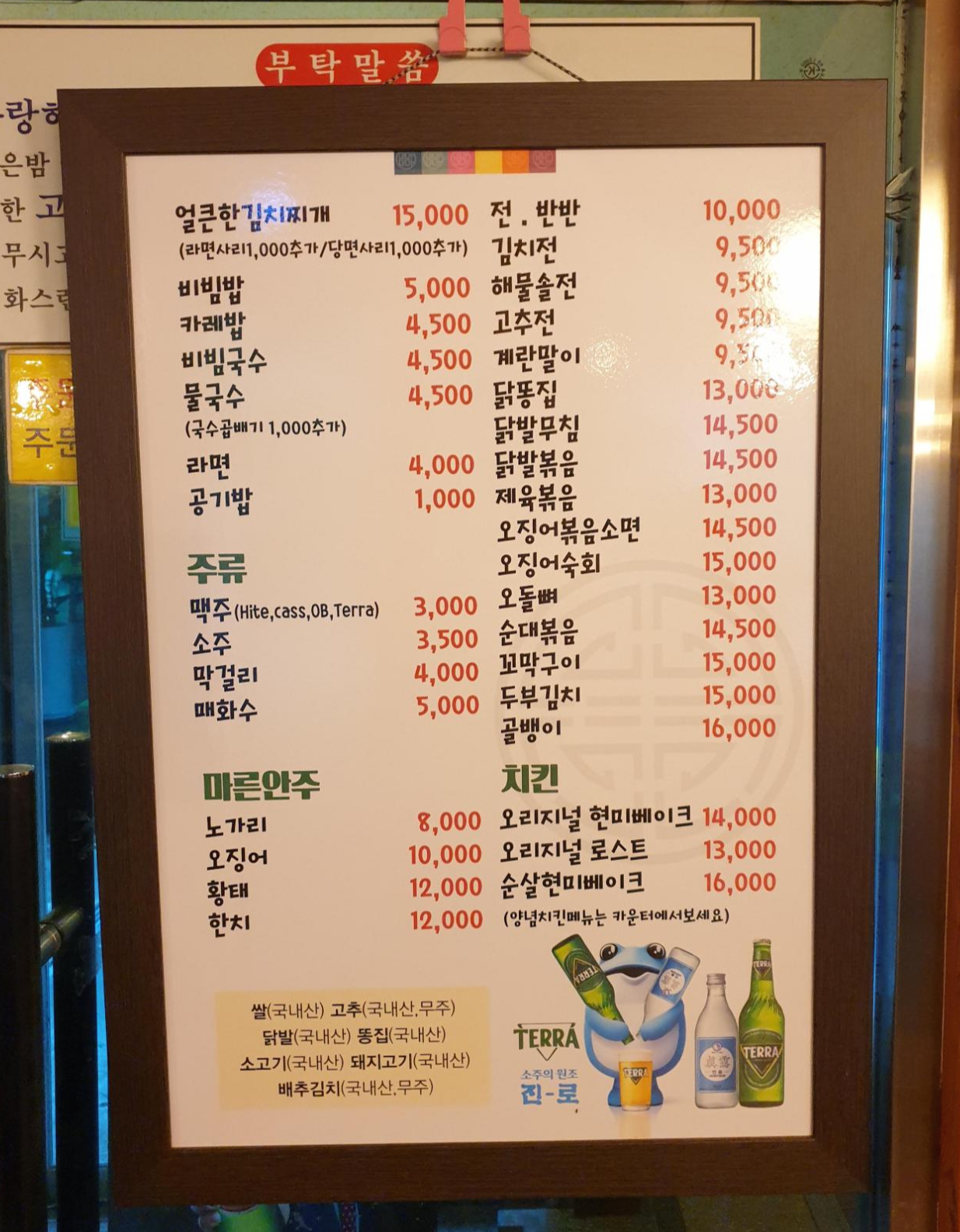메뉴판입니다.