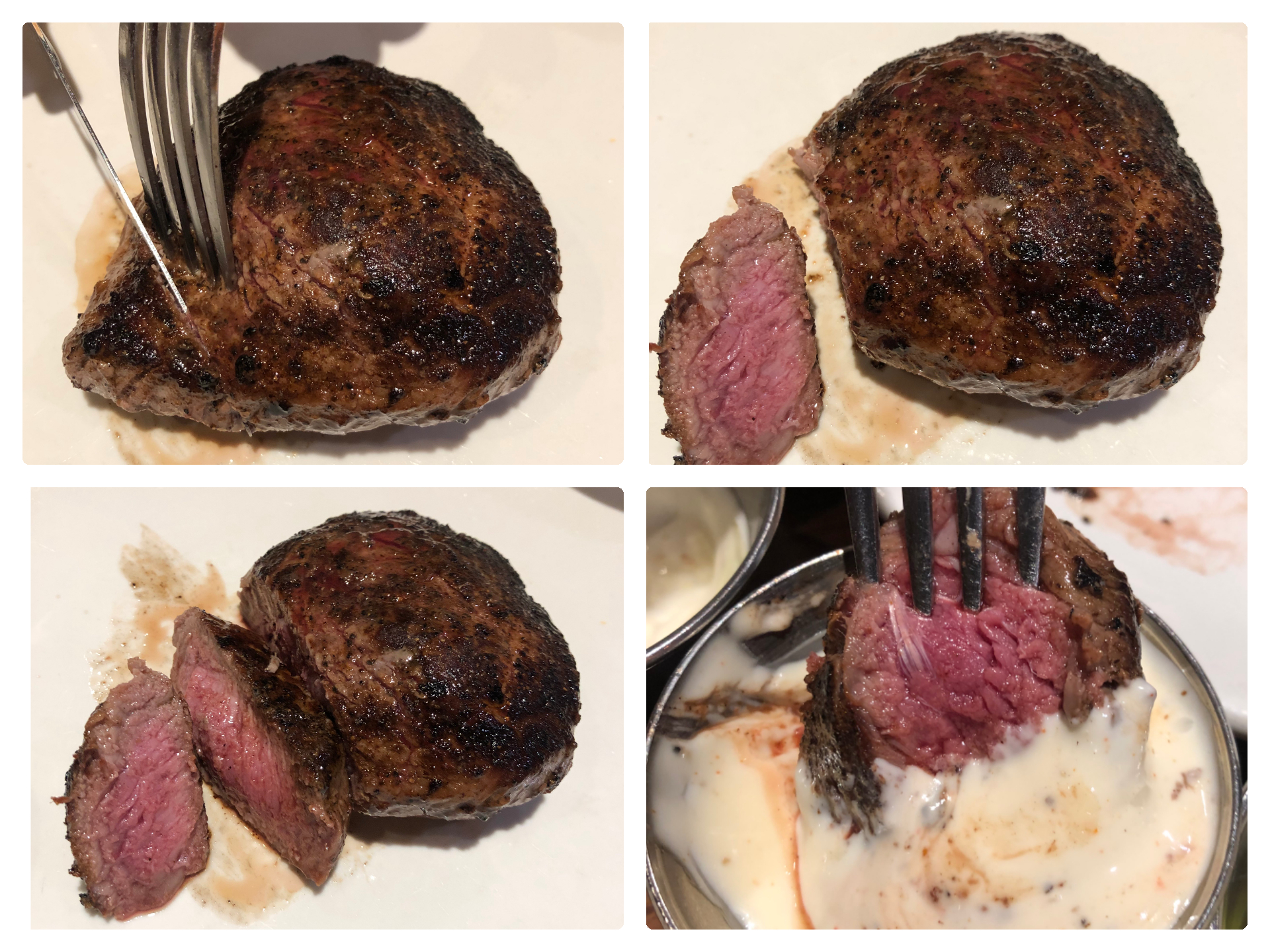 썰고 나서 첫입 베어 무는데 고기의 육즙과 향이 가득 나면서 행복한 식사를 이어갈 수 있었답니다.